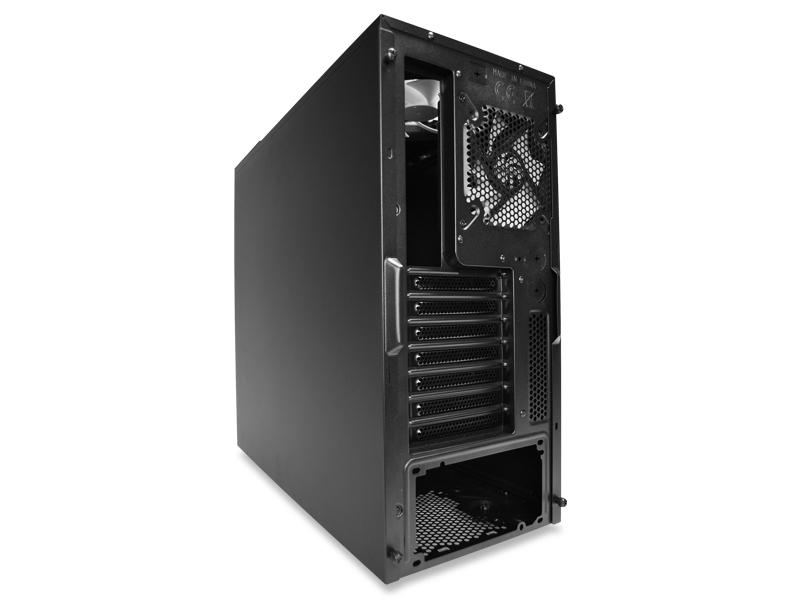 Numerosi gli alloggiamenti per le ventole: 2 da 140 sul tetto e nel pannello frontale, 1 sul retro, 2 sulla paratia laterale e 2 sul fondo (1 destinata alla ventola dell'alimentatore). Troviamo preinstallate 1 ventola da 120mm nel retro e una da 140mm sul tetto. Purtroppo assenti i filtri anti-polvere.