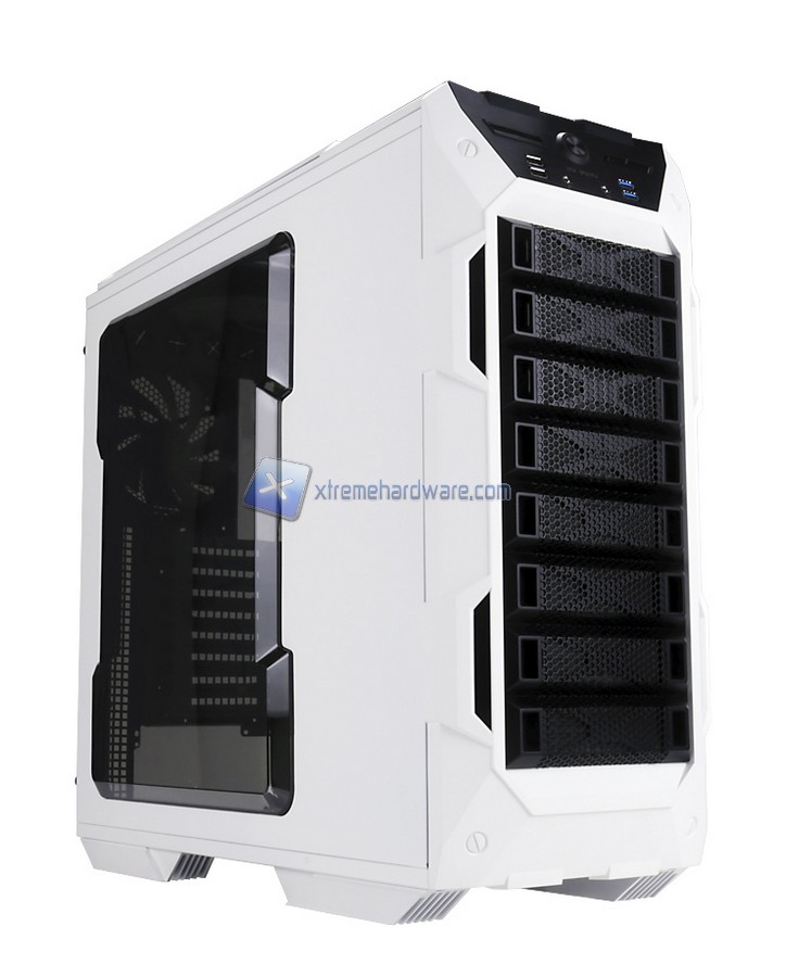 In Win non finisce qui e presenta al Computex di Taipei anche una versione rinnovata dell'In Win GRone. Allo stand era presente la versione in colorazione nera di questo fantastico case di fascia medio-alta che permette di ospitare senza problemi configurazioni high-end. L'In Win GRone e` un case realizzato in SECC con dimensioni di Full Tower e pannello finiestrato per permettere di visualizzare l'hardware all'interno del case. Per quanto riguarda la dissipazione di questo case, esso permette l'installazione nel top di radiatori da 360 millimetri, nel fondo (previa rimozione dei cage per gli HD) di un radiatore da 240 millimetri e di fori per il passaggio dei tubi nella parte posteriore. Inoltre non manca un supporto a schede grafiche di fascia alta con lunghezza fino a 365 millimetri, porte USB 3.0, ed il pieno supporto a schede madri anche in formato E-ATX.