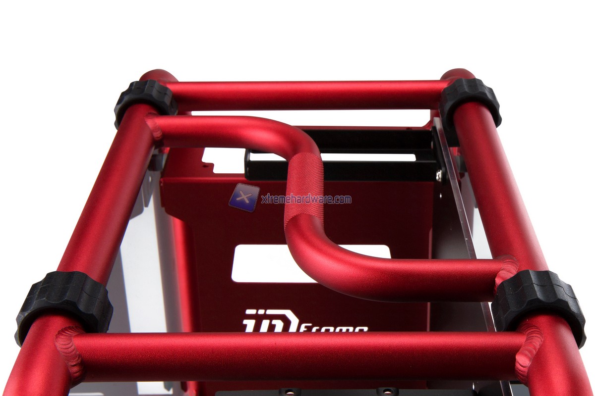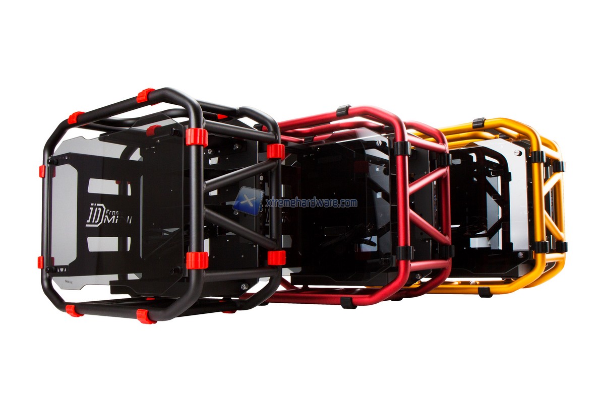 Partiamo subito dal nuovissimo D-Frame Mini modello ITX del fratello maggiore D-Frame. Il nuovo D-Frame riprende la linea ed il design del D-Frame con la semplice differenza nel formato. Il D-Frame Mini ospita soltanto schede madri in formato Mini-ITX ma e` comunque dotato di caratteristiche che lo rendono un case di fascia alta come ad esempio la possibilita` di installare alimentatori fino a 220 millimetri (quindi anche modelli di fascia alta), schede video high-end o ancora dissipatori AIO o radiatori da 240 millimetri. Il design del D-Frame Mini e` unico come quello del D-Frame. La struttura e` interamente in tubolari di alluminio e di tipo Open Frame con pannelli laterali in acrilico fume` per rendere il case o diciamo questa opera d'arte unica. I colori che abbiamo visto sono stati Nero,Rosso, Oro e Bianco. Il D-Frame Mini e` dotato anche di due porte USB 3.0 e unita` da 3,5" trasformabili in unita` da 2,5".