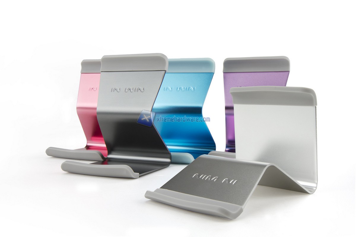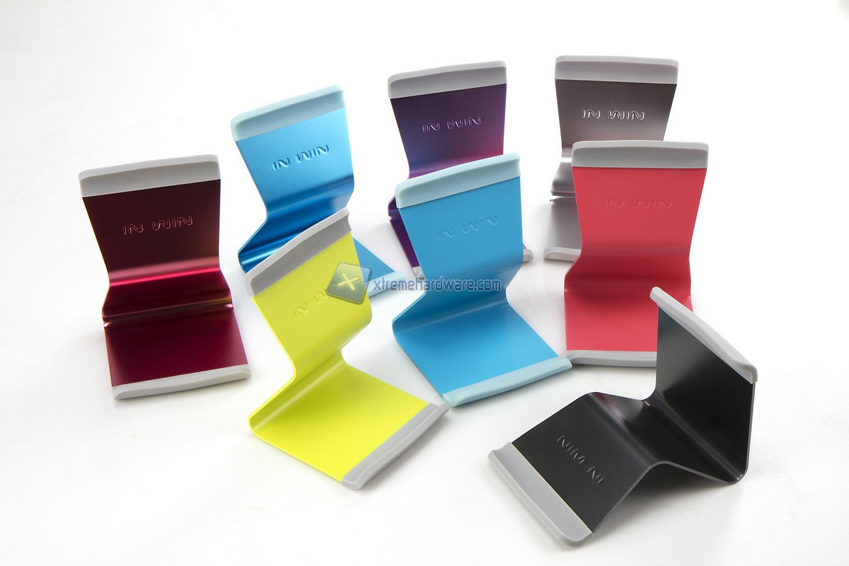 Per finire erano presente alcuni interessanti accessori della linea "Lifestyle" di In Win come iBite due semplici clip in alluminio che permettono di sorreggere un tablet o uno smartphone in posizione verticale (disponibili anche in versione limitata) oppure iSeat un ulteriore stand per tablet realizzato in alluminio con rivestimento in gomma e disponibile in vari colori. Non manca anche In Win Birdie un pratico oggetto di design con la forma di un volto di un uccello che permette di avvolgere un eventuale auricolare per riporlo in maniera pratica e veloce. Disponiible anche questo in vari colori.