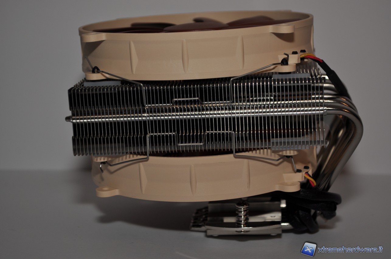 Come è possibile vedere dall’immagine, le due ventole NF-P14 in dotazione possono essere montate in configurazione push-pull o singolarmente, con la ventola situata in alto, per coloro che dispongono di ram ad alto profilo, o con la ventola situata in basso, preferibile per montare il dissipatore in sistemi HTPC. Questo dissipatore è comunque adatto a tutti coloro che cercano temperature molto basse e allo stesso tempo un discreto margine di overclock e silenziosità.