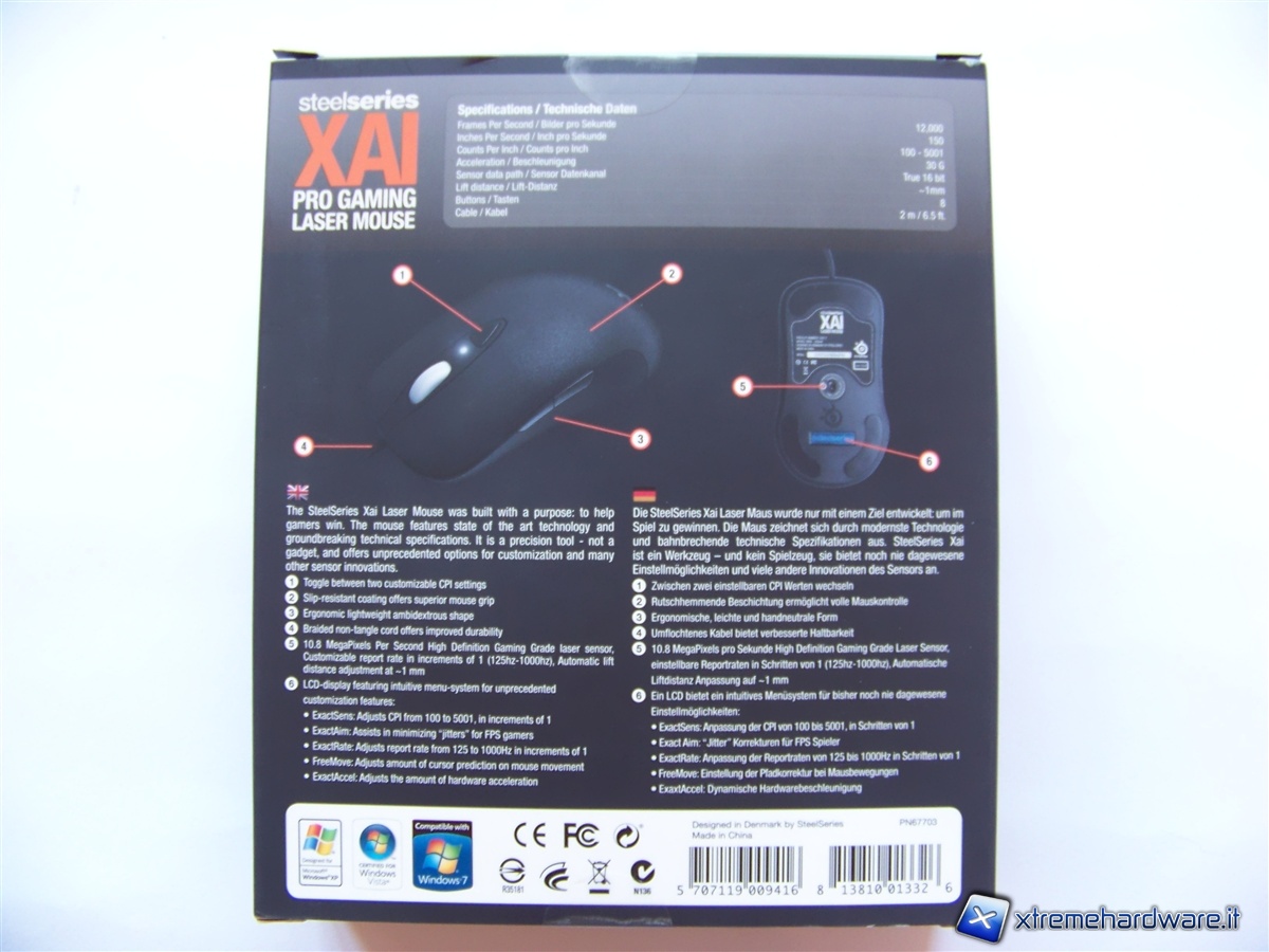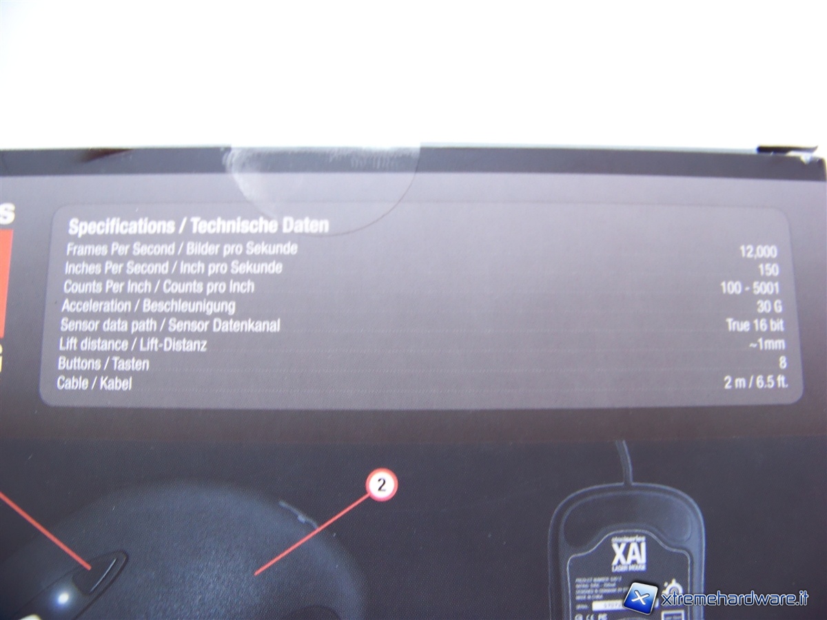 Sempre sul retro della scatola, in cima, vengono riportate le specifiche tecniche dello XAI.