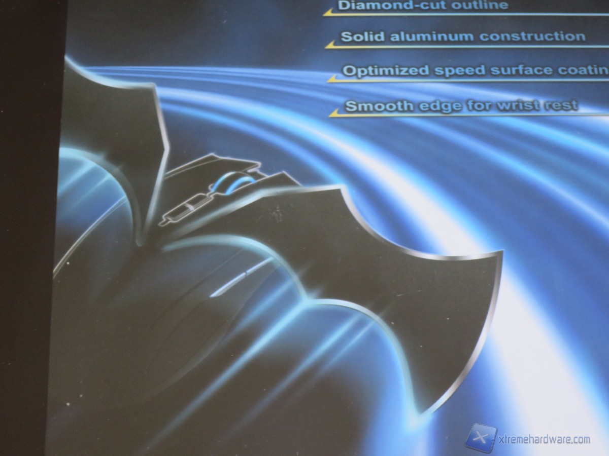 La confezione in cui è ospitato il Batmat è una semplice confezione in plastica trasparente che ci da la possibilità di vedere il mousepad all’instante. Nel latro destro è presente anche un’apertura per provare con mano la sua superfice ultra scorrevole. Nella parte frontale troviamo inoltre le caratteristiche tecniche ed un immagine illustrativa del mousepad oltre il logo dell’azienda. Ricordiamo che le caratteristiche e la grafica sono presenti su un foglio interno avvolto al mousepad.