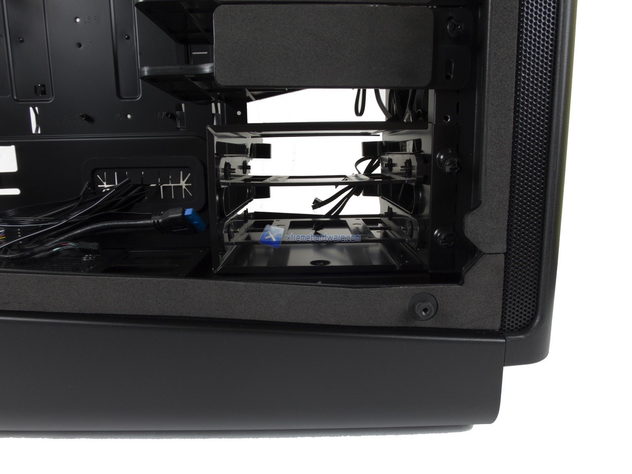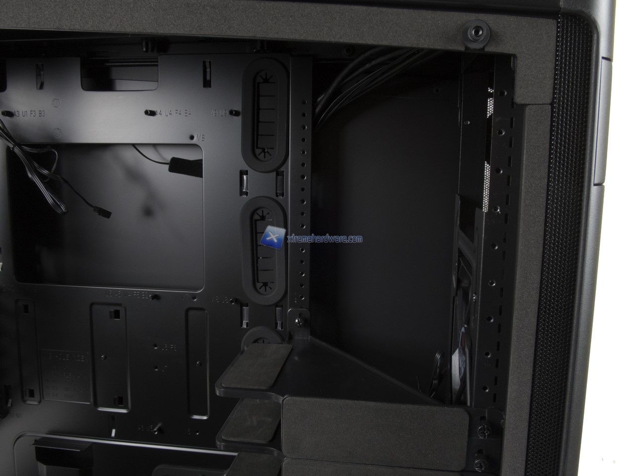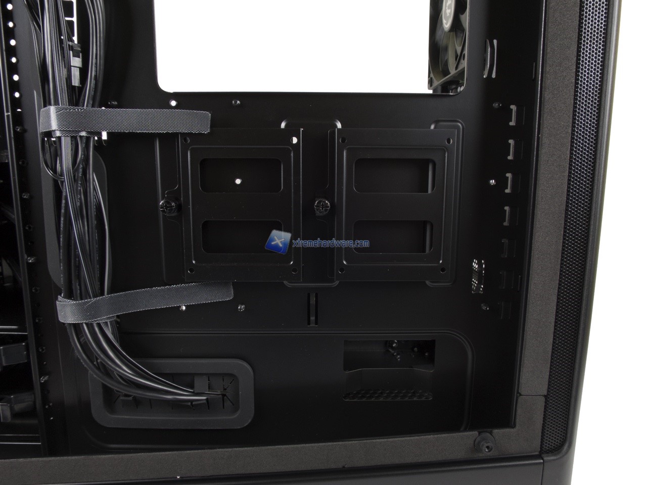 Spostandoci nel lato di destra possiamo osservare il classico Tray della scheda madre contornato da diversi fori per il passaggio dei cavi.