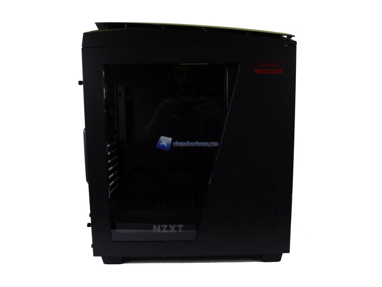 Dalla paratia di sinistra possiamo cogliere alcuni dettagli quali il logo ROG Certified nella parte alta mentre nella parte inferiore la serigrafia a tema ROG.