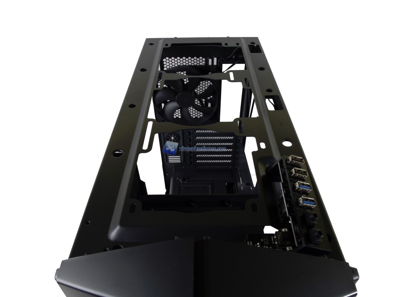 Inoltre rimuovendo il pannello superiore potremo accedere al vano interno dove troveremo un telaio/supporto per Ventole/AIO/Radiatori fino a 360 mm.