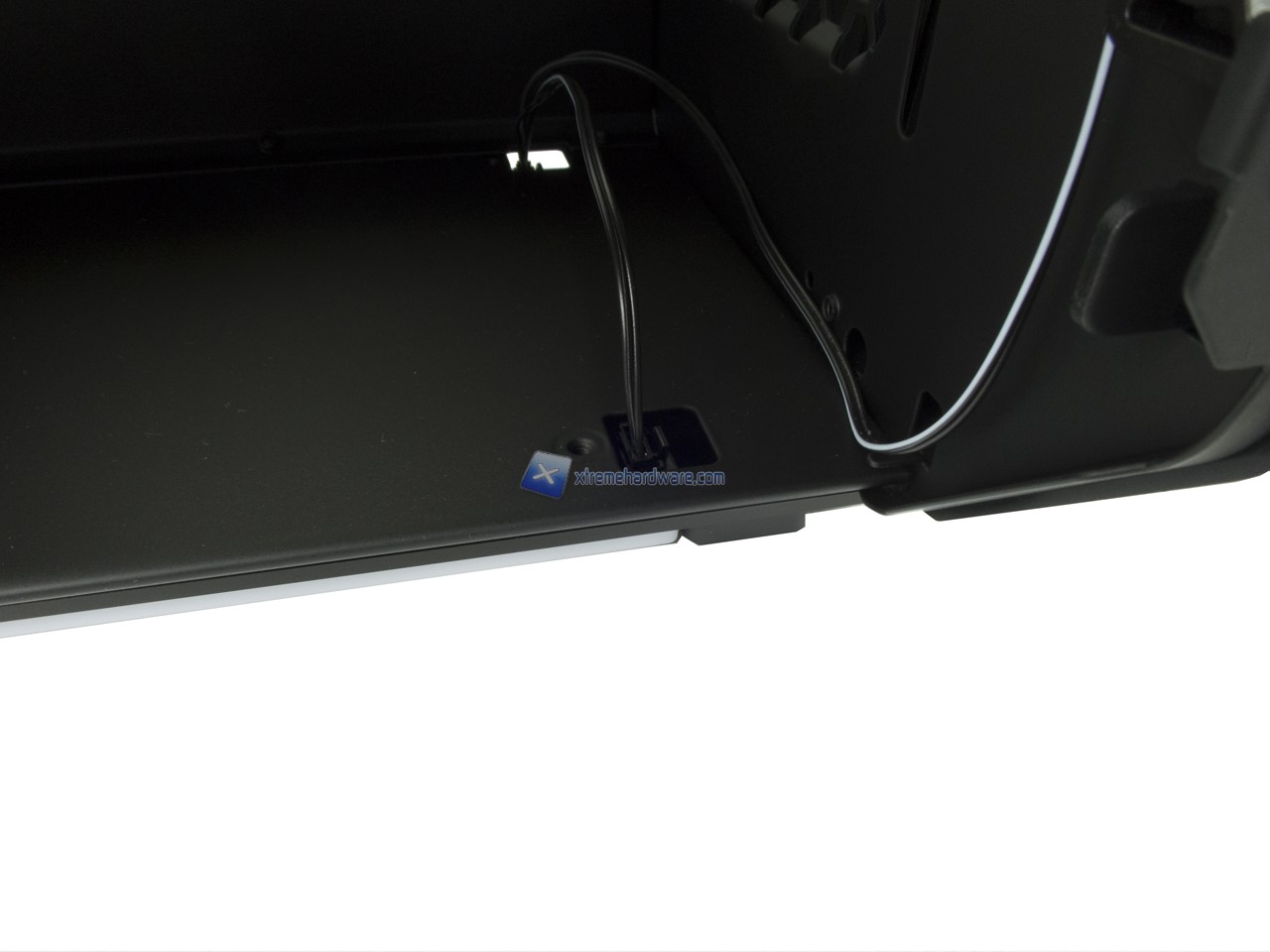 Partendo dal lato sinistro possiamo notare nuovamente la griglia che ci permetterà di installare ventole o eventuali radiatori anche in configurazione Push/Pull visti i circa 16cm di spazio che intercorrono tra frontale e Midplate. Midplate che andrà come sempre a nascondere l’alimentatore e tutti i cavi che partiranno da esso.