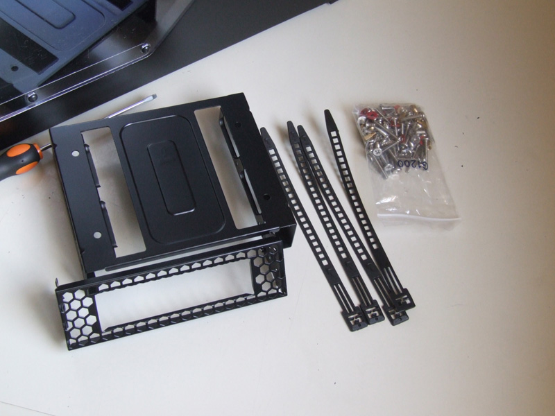 Il bundle è molto essenziale, qui troviamo il frontalino per inserire il lettore floppy, alcune fascette per aiutarci a sistemare al meglio i cavi all'interno del case, e un sacchettino di viteria varia.