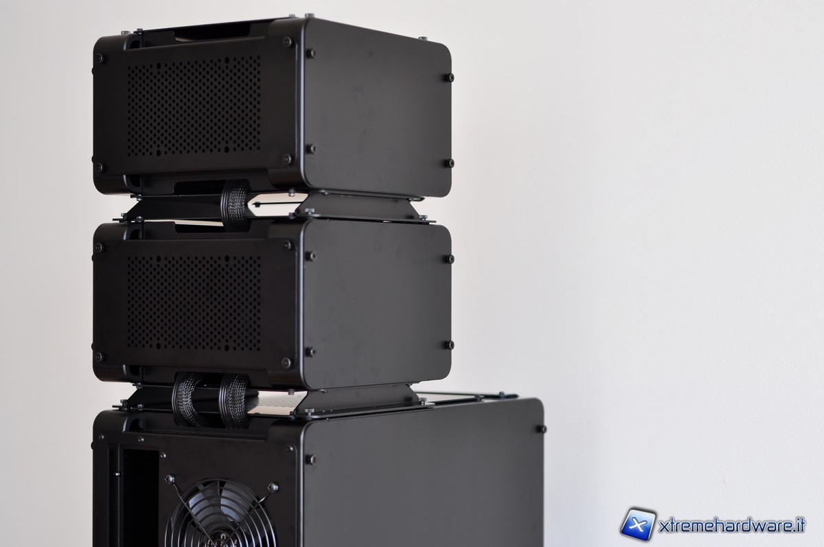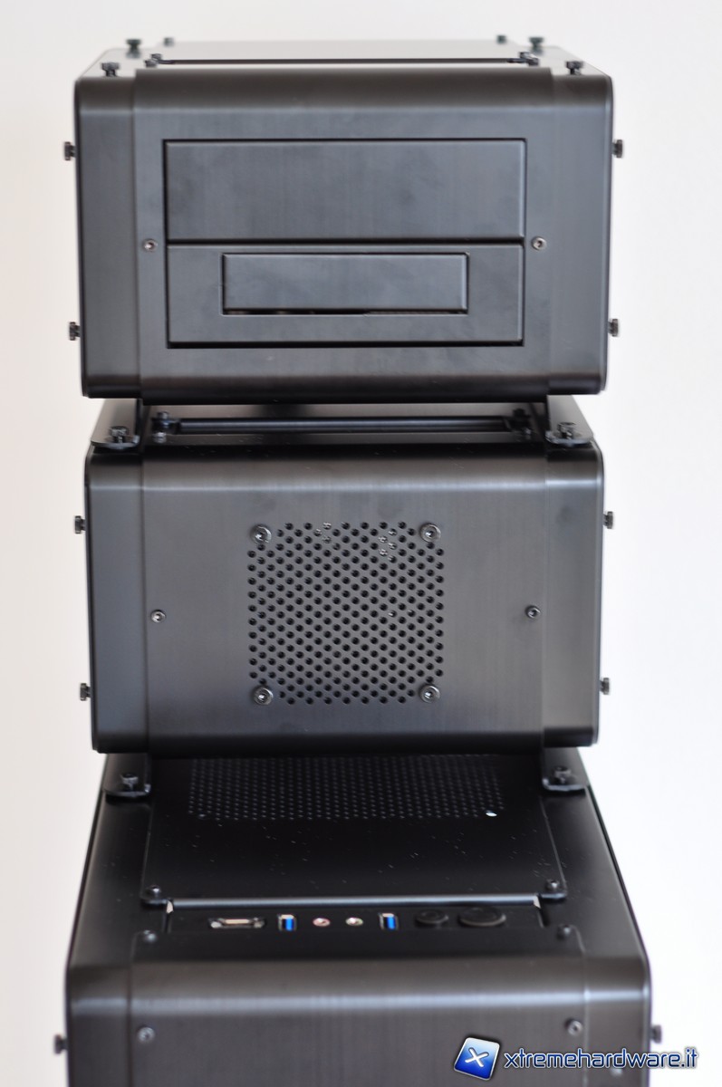 I vantaggi derivanti da questa soluzione modulare e componibile non si limitano alla praticità, bensì influenzano anche le prestazioni dell’hardware contenuto nel case. La distribuzione dei vari componenti in più unità permette, inoltre, una migliore areazione dei componenti stessi per una dissipazione del calore ottimizzata e anche la possibilità di adottare differenti soluzioni per ogni categoria di componente racchiusa nel modulo dedicato.