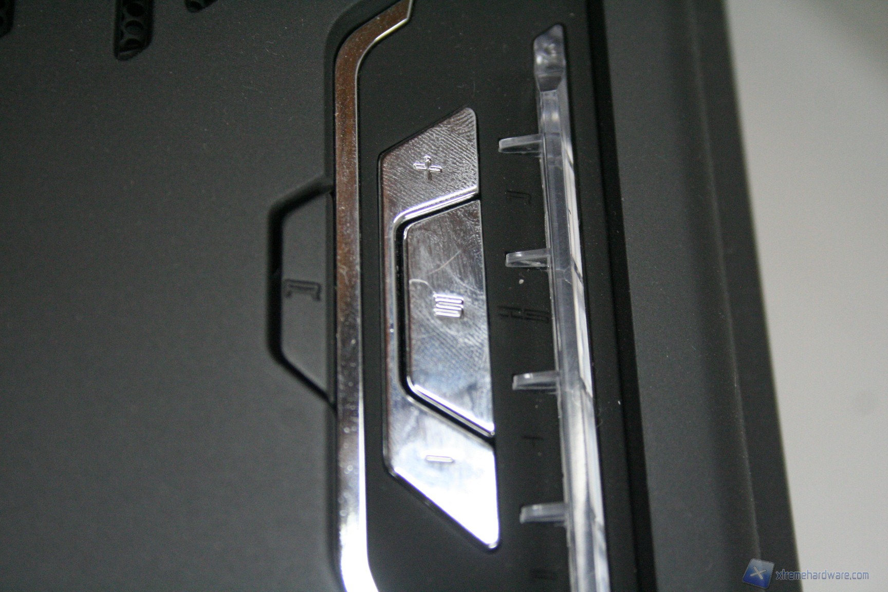 Nella parte superiore sinistra troviamo gli ingressi USB 3.0 (x2) e 2.0 (x4), similmente a quanto visto per il Phantom 630. Nella parte destra invece troviamo il sistema di controllo delle ventole, il pulsante di accensione e quelli relativi alle periferiche audio. E’ presente anche il pulsante di Reset, dietro il pannello frontale però. Come si evince dalle fotografie gli spigoli sono ondulati, ottimamente rifiniti e sono presenti anche delle aperture di ventilazione con motivo esagonale.