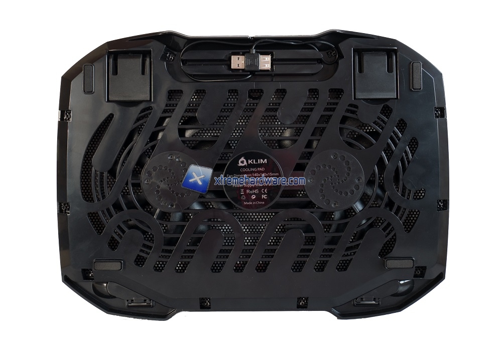 Le caratteristiche di questa base per notebook sono piuttosto spartane in modo da contenere il prezzo. Questo si ripercuote anche sulla confezione ed il suo contenuto, ad eccezione del prodotto in esame troviamo soltanto un piccolo foglietto che spiega come utilizzarlo. Le dimensioni della Klim Pro sono di 36 x 26,5 x 2 cm, peso di 550 g. A livello costruttivo la base è costituita da una struttura portante in plastica ed una parte superiore in griglia metallica. Grazie alla plastica il peso è contenuto e, allo stesso tempo, la struttura è sufficientemente robusta. Ci sono due piedini a scatto che permettono di inclinare la base così come un paio di altri piccoli piedini che bloccano il notebook impedendogli di scivolare sulla base stessa una volta che questa viene inclinata. Sul retro c'è anche il cavetto USB per l'alimentazione delle due ventole da 120mm, la qualità del cavetto non è proprio il massimo ma fa il suo dovere; inoltre la porta USB è "passante" ovvero il connettore femmina è stato replicato sul retro in modo da non perdere la porta USB del notebook.