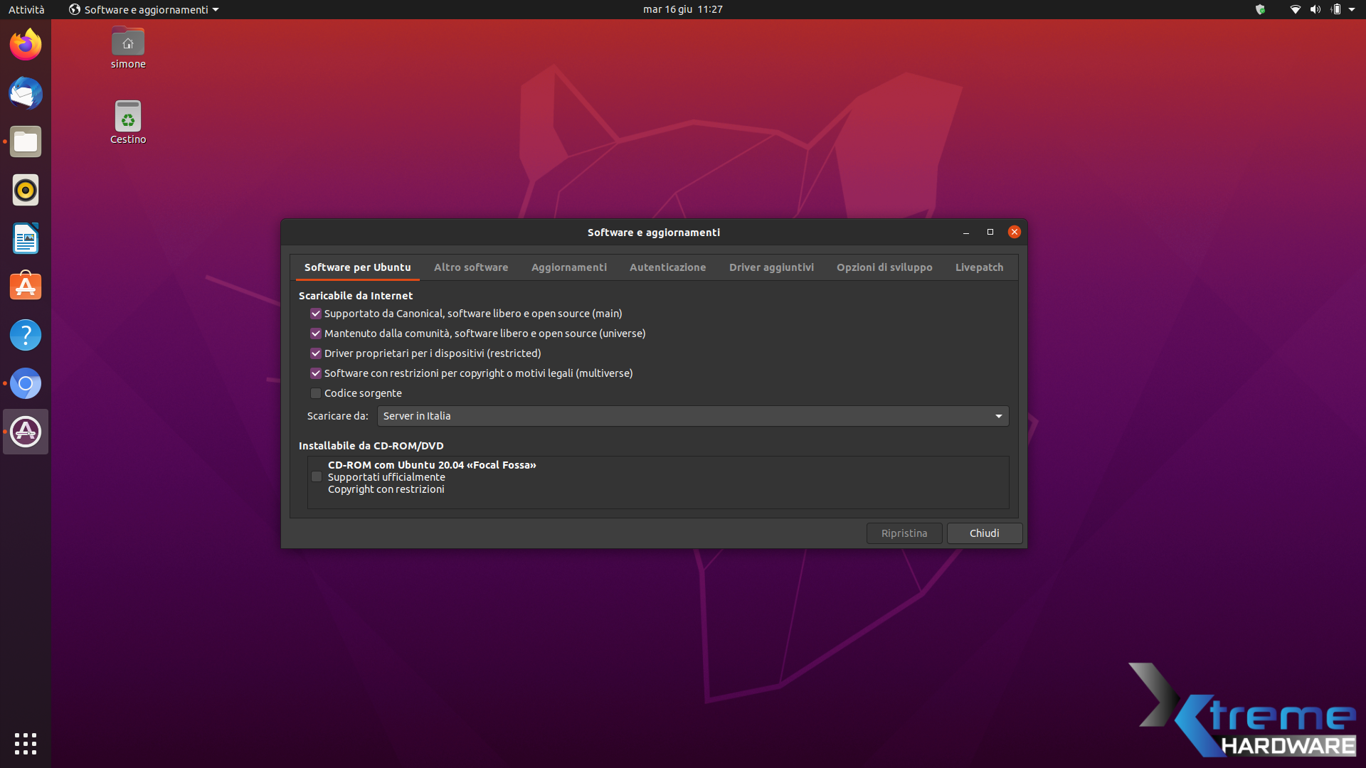 Anche questa è un’operazione molto semplice, non dovremo fare altro che aprire “Software e Aggiornamenti”, recarci nella scheda “Software per Ubuntu” e spuntare le due caselle corrispondenti. A questo punto direi che ci siamo, e non abbiamo nemmeno dovuto mettere mano al Terminale, ottimo!